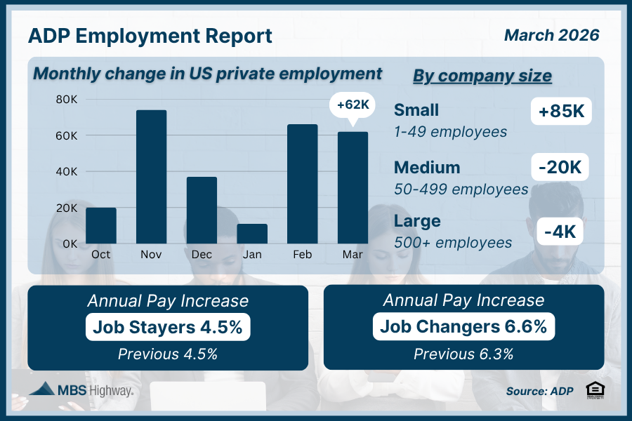 Looking closer at private-sector hiring, ADP data adds more context on where growth is occurring. Private employers added 62,000 jobs in March, beating forecasts of 40,000. But the headline masks important differences across company size and sector.