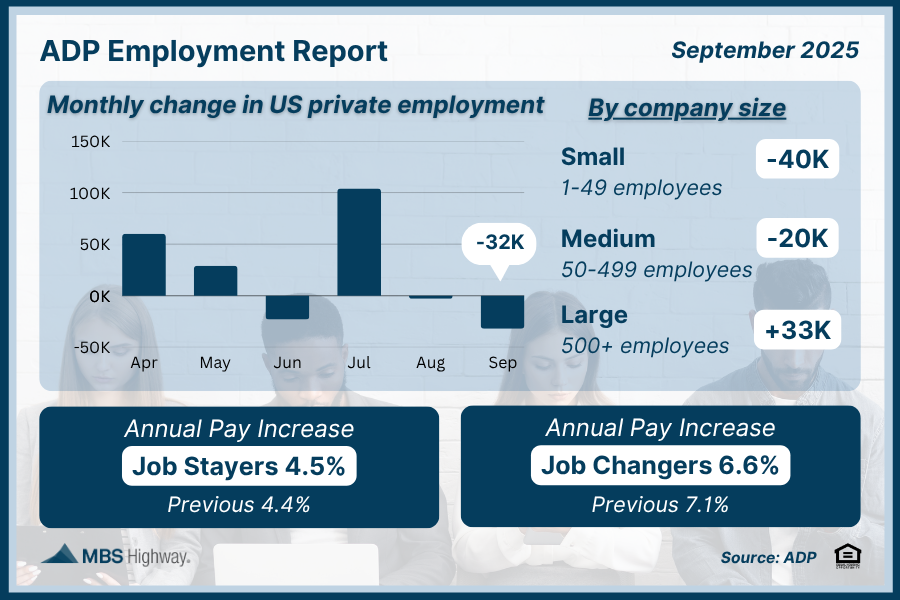 Private sector job losses in September take on added importance with the official government report delayed by the shutdown. In housing, contract signings rose in August as lower rates sparked demand. Read on for more key takeaways.