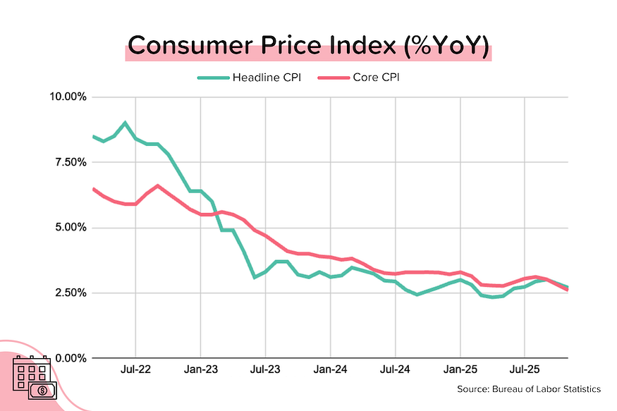 Lowest “core” CPI in years. We also got October and November inflation data, and it was much tamer than expected. Both “headline” and “core” CPI (Consumer Price Index = inflation for you and me) climbed just +0.2% over the last two months, allowing the annual inflation rate for “headline” CPI to fall to +2.7% YoY and “core” CPI to drop to 2.6% YoY. That’s the slowest rate of “core” CPI growth since April 2021! [Source: BLS]